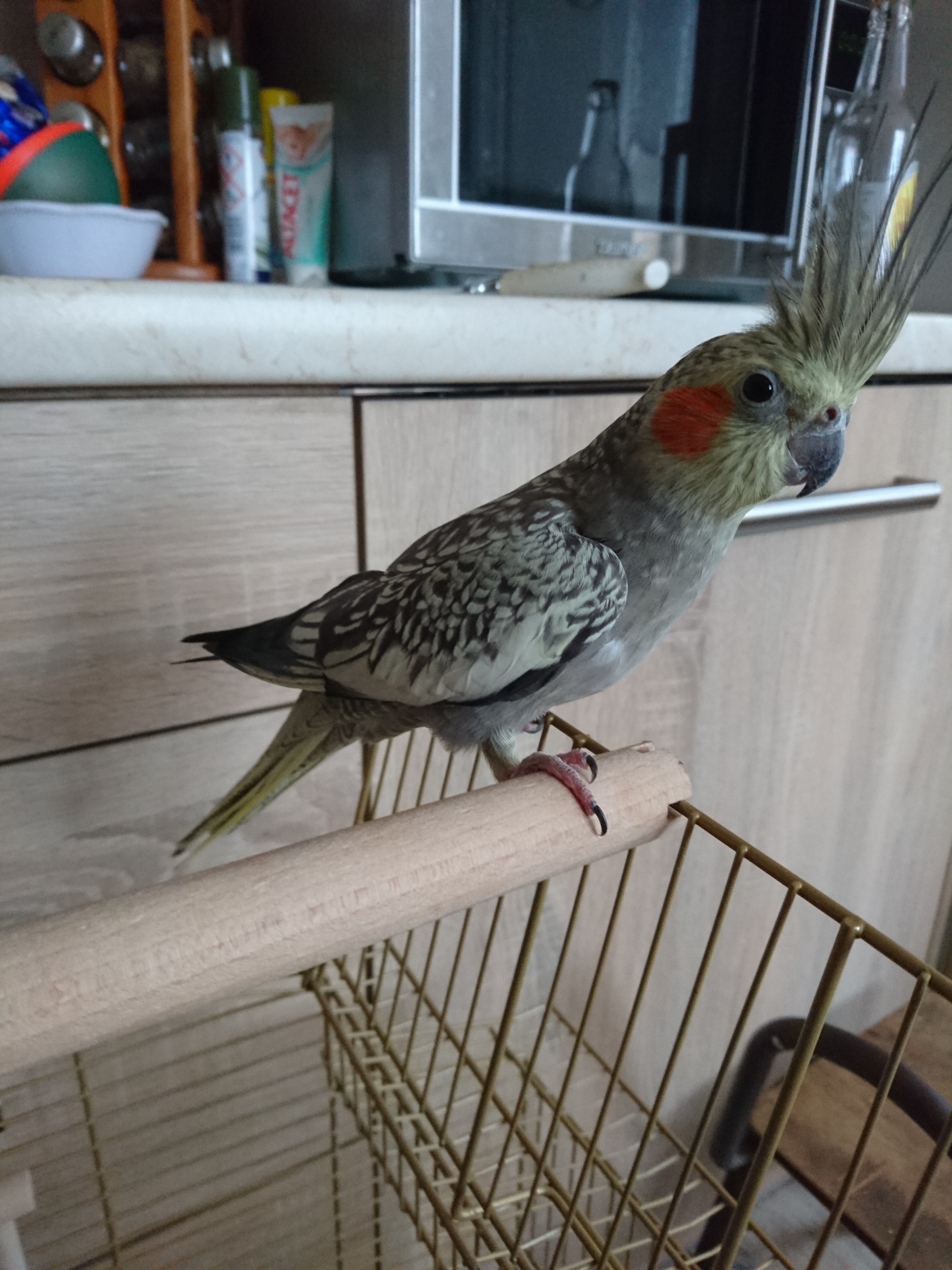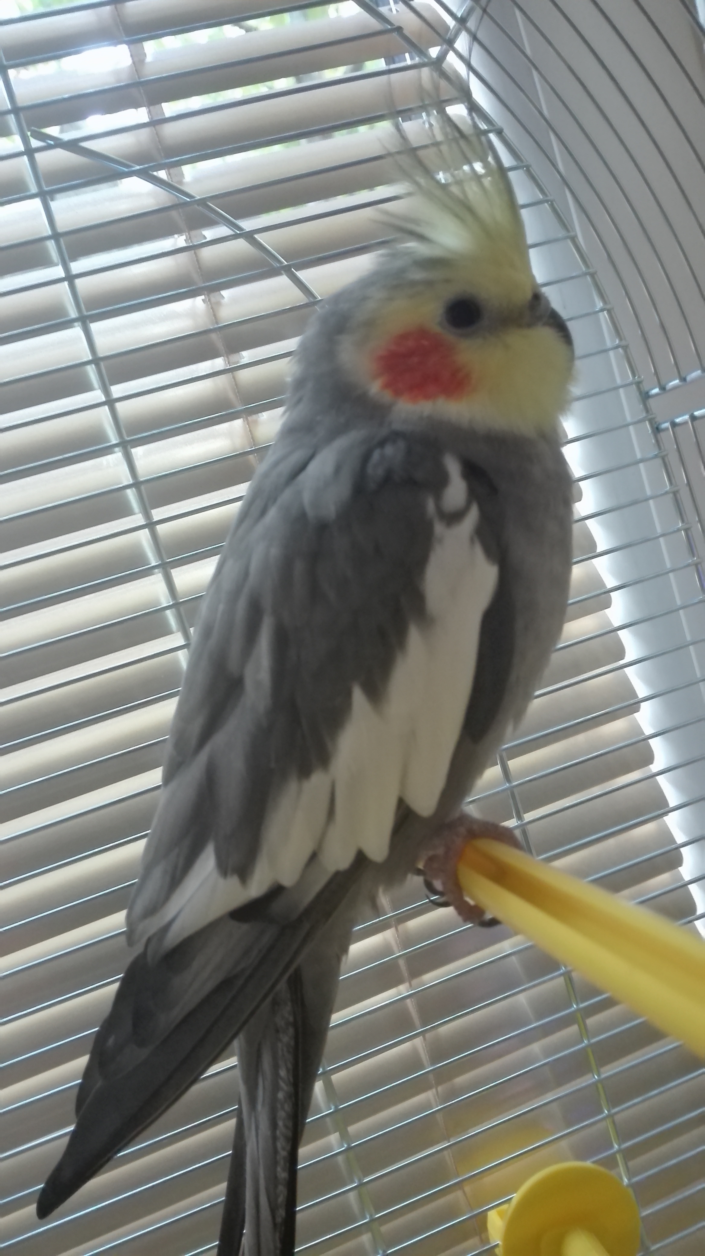 Proszę o pomoc w ustaleniu płci. Papużka zabrana z zoologicznego (Julek był atakowany przez inne papugi i bardzo smutny. Nie miałam serca wyjść bez niego- decyzja trochę spontaniczna). Pani w zoologicznym powiedziała, że ma max rok... I że to samiec. Jednak zagłębiając się w temat płci mam wątpliwości. Na ogonku tak jakby we wewnętrznej części ma prążki (widać je tylko jak rozłoży ogon w normalnej pozycji jest gładki). Załączam zdjęcie Julka :)
