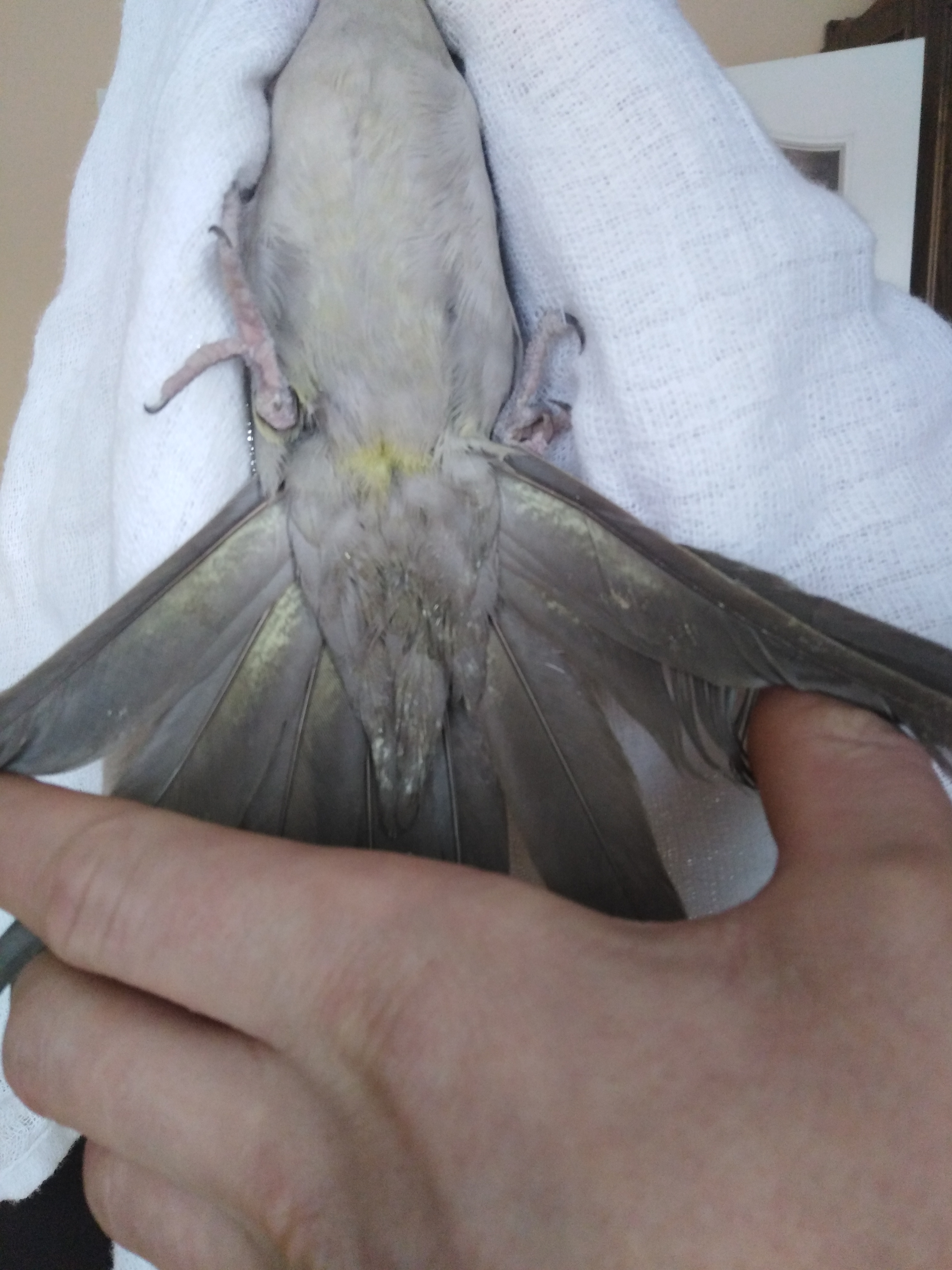 Niestety brak obrączek. Skoro jest to nominalna odmiana to chyba samiec nie powinien mieć takich żółtawych plamek pod ogonem. Już niewiem co o tym myśleć.