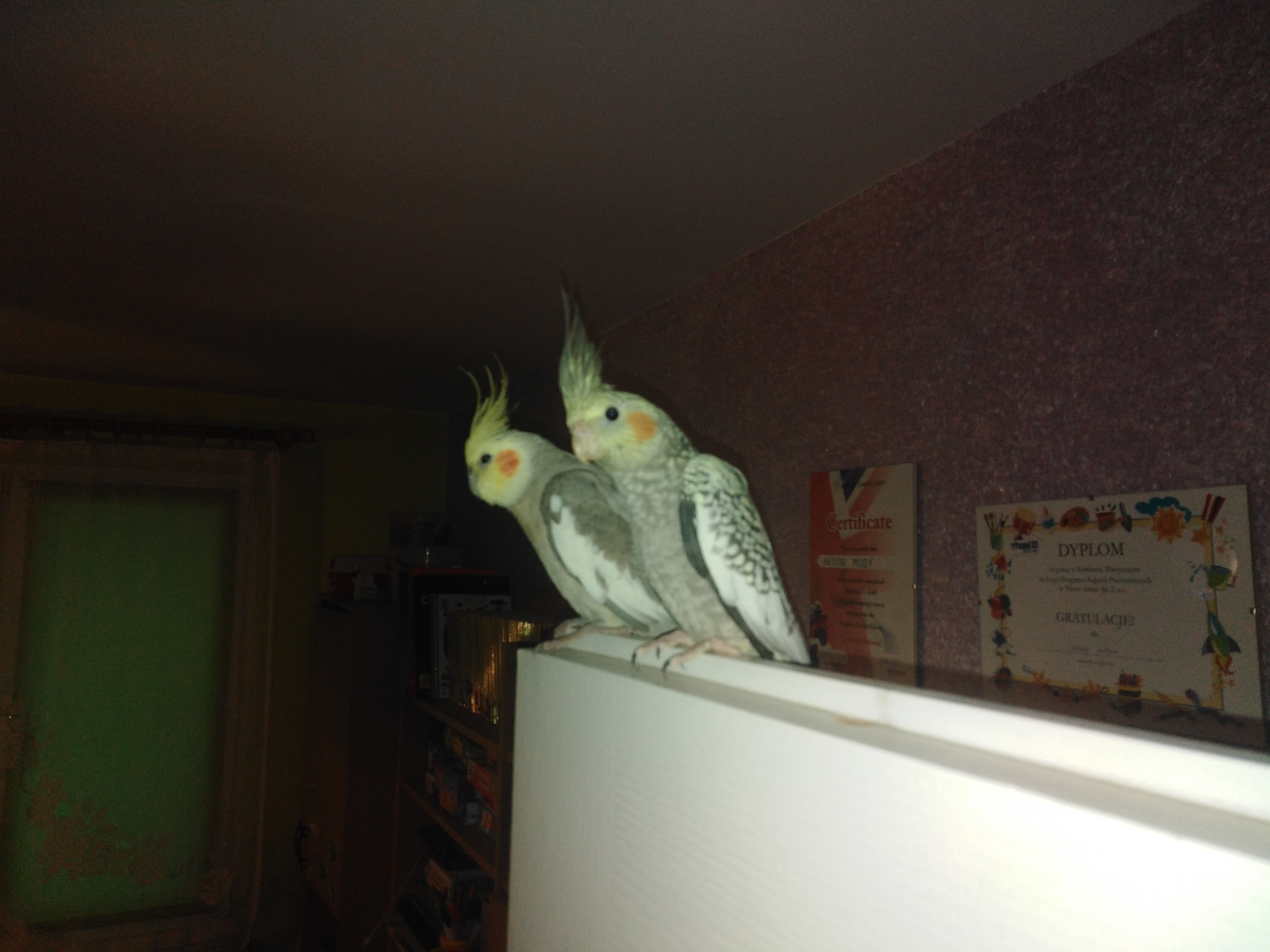 Papugi ma od kilku dni. Wzięte od miejscowego hodowcy. Podobno samica ta z lewej na zdjeciach
