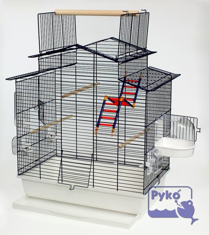 - Ma otwierany daszek. Łatwiej Ci będzie umyć klatkę od wewnątrz, wymieniać miski z pokarmem bo muszą być zawieszone możliwie najwyżej by nie był zanieczyszczany odchodami. Papuga będzie miała ułatwione wejście do klatki,