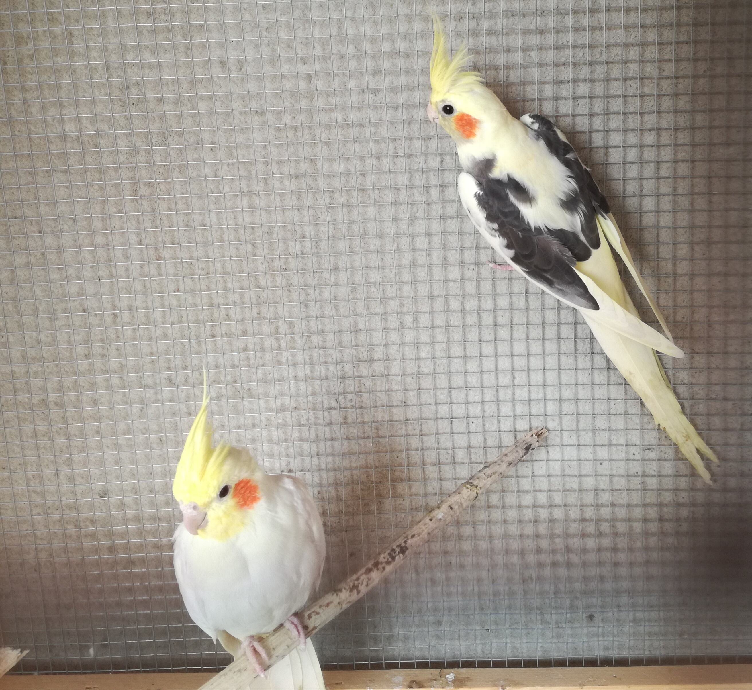Hodowca powiedział że szara to samica a biały to samiec.
