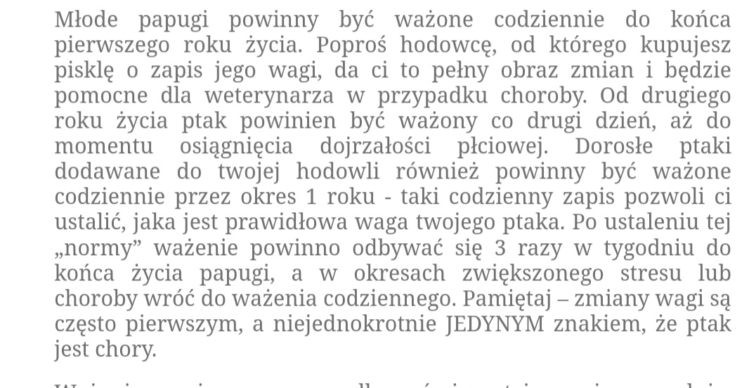 No jasne ,że widać i czuć,ale mimo wszystko hodowca zalecał jak kupowałam,bo to jak wiadomo pierwszy sygnał,że coś może się źle dziać. Na portalach internetowych( pewnie wiecie jakich) ,też piszą,że każda papuga do ukończenia pierwszego roku życia powinna być dzinnie ważona,poźniej chyba kilka razy w tyg.