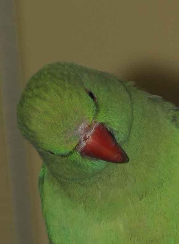 Niepokoje się tym, bo widzę, że to się powiększa, nad dziobem jest coraz bardziej "wyłysiała" a woskówka robi się coraz bardziej brązowa i jakaś taka pofałdowana.