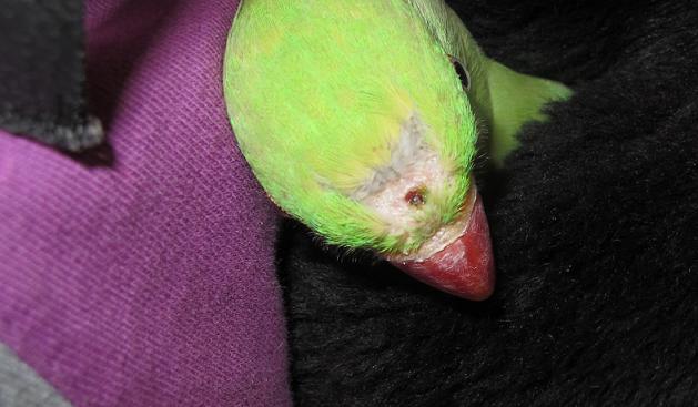 Moja aleksandretta jest bardzo często wypuszczana, a zamykana jest dopiero wtedy gdy czasem uda mi sie ją przyłapac na tym, że jest wklatce i zajada ziarenka. Niestraciła ani apetytu ani chęci na latanie natomiast od tygodnia zauwaqżyłam że stroszą jej sie pióra na głowce, dlatego też kiedy mogłam i zauważyłam że sie drapie starałam się odwrócić jej uwage, natomiast gdy dziś wróciłam do domu zauważyłam, że piórek nie ma natomiast pojawił się rana. Nie wygląda ona na głęboką ale nie chce aby robiła sobie krzywde. Zaznacze odrazu, że w innych miejscach papuga sie nie skubie tylko na głowie sie drapie. Bardzo proszę o jakąś porade, polecenie jakiegoś weterynarza w okolicach Gdańska. Wspomne też, że papuga nie jest oswojona dlatego na zdjęciach trzymana jest w rękawiczkach.
