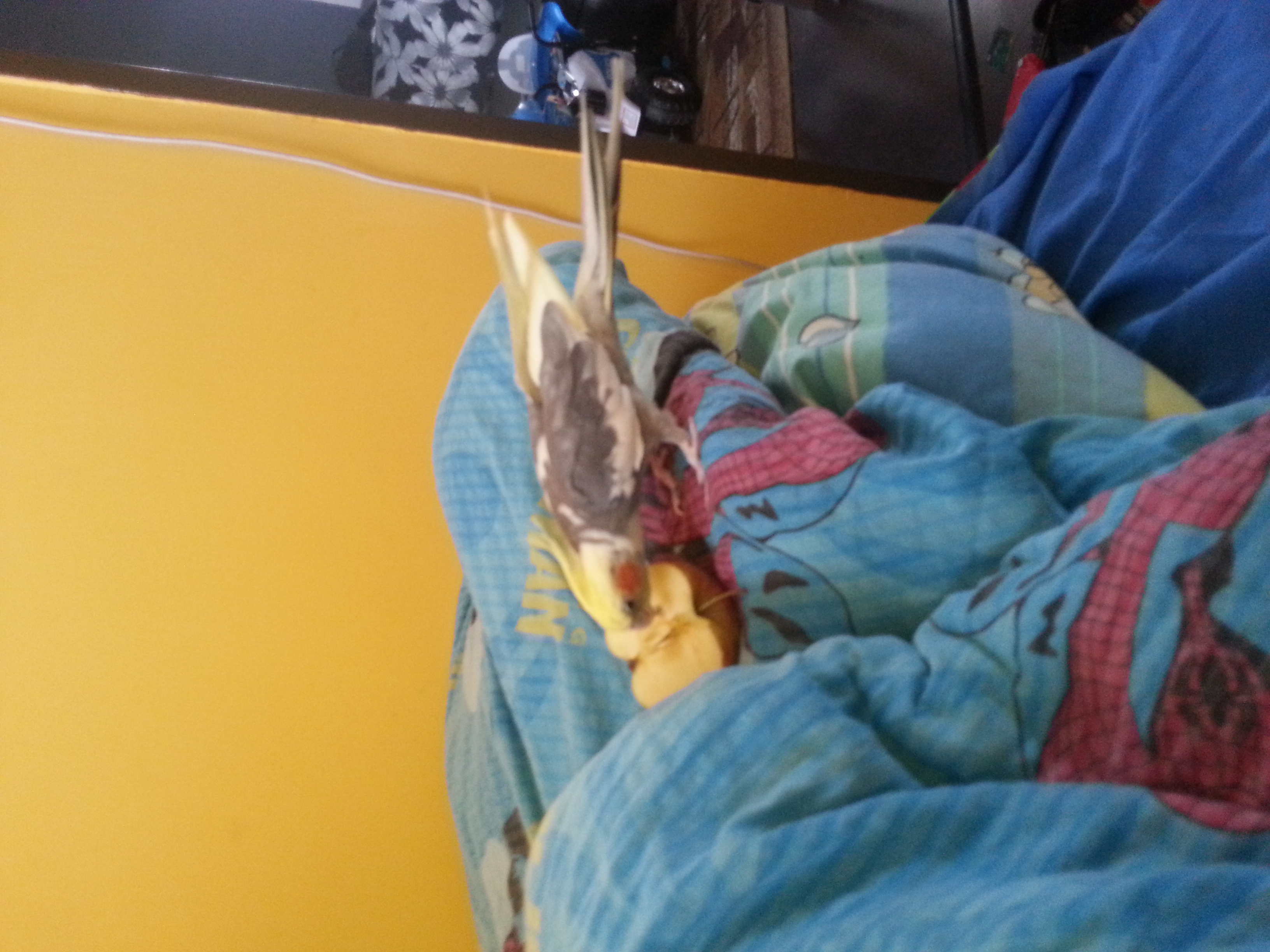 Co do diety jest ciężko :( codziennie ma warzywa i owoce i nie je :( ostatnio jak siedział na łóżku, szybko polozylam połowę jabłka i trochę podziubal. Ale w klatce nie bardzo chce jeść :( Jakiś pomysł? Ostatnio mu wieszam na zabawkach w klatce ale nie je :(