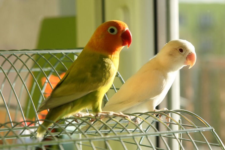 Co do płci to Ci nie pomogę, natomiast powiem że są to dwa gatunki papug . Moim zdaniem fiszerek (ta z czerwonym dziobem), biała to mutacja czerwonoczelnej.
