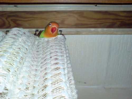 Nierozłączki są piękne i takie wdzięczne-co jedna to ładniejsza, a co ciekawsze to mają takie upodobania jak mój Ferdek-też tak lubi chodzić i kukać po firance,wchodzić pod szmatki i wystawić tylko czubek dzioba wisieć głową w dół i obserwować czy ktoś się patrzy