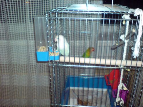 Oprócz tej parki fiszerków, mam jeszcze parkę roseicollisów. Porównująć głośność to fiszerki są cichszymi ptakami, przynajmniej moje. Według mnie nierozłączki spokojnie można trzymać w bloku, ich ćwierkanie nie zakłóca w jakiś drastyczny sposób spokoju w bloku, szczekanie psa jest dużo głośniejsze. Ciszy nocnej też nie zakłócisz, ja swoim wyłączam światło o 22.00 i wtedy ich w ogóle nie słychać.
