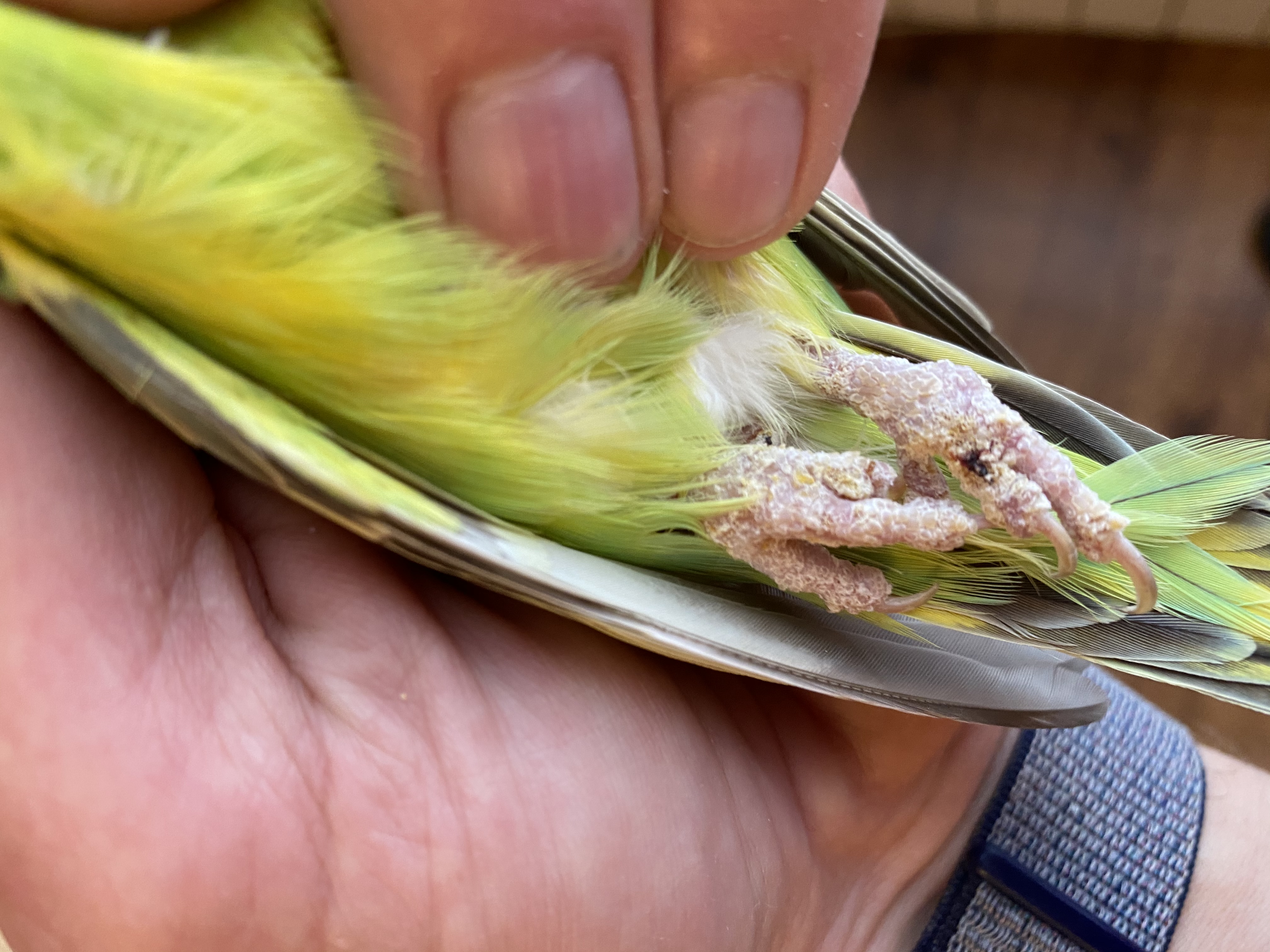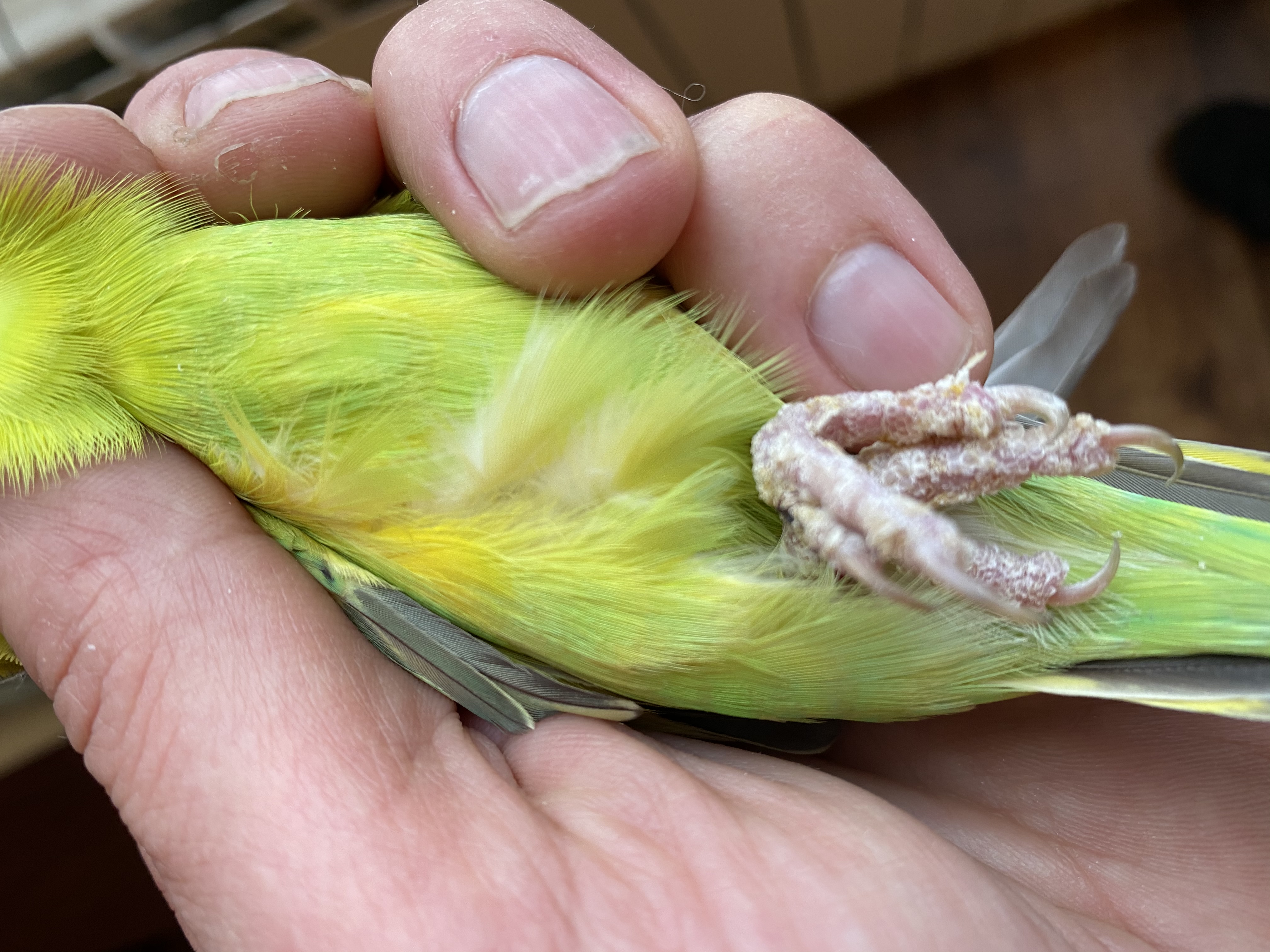 Córka ma od paru miesięcy parkę falistych i dzisiaj zauważyłem że samiczka na coś choruje , nóżki ma grubsze oraz chropowate (jak na zdjęciu ) Mozecie pomóc co jej jest ? Co to za choroba oraz jak to leczyć ?