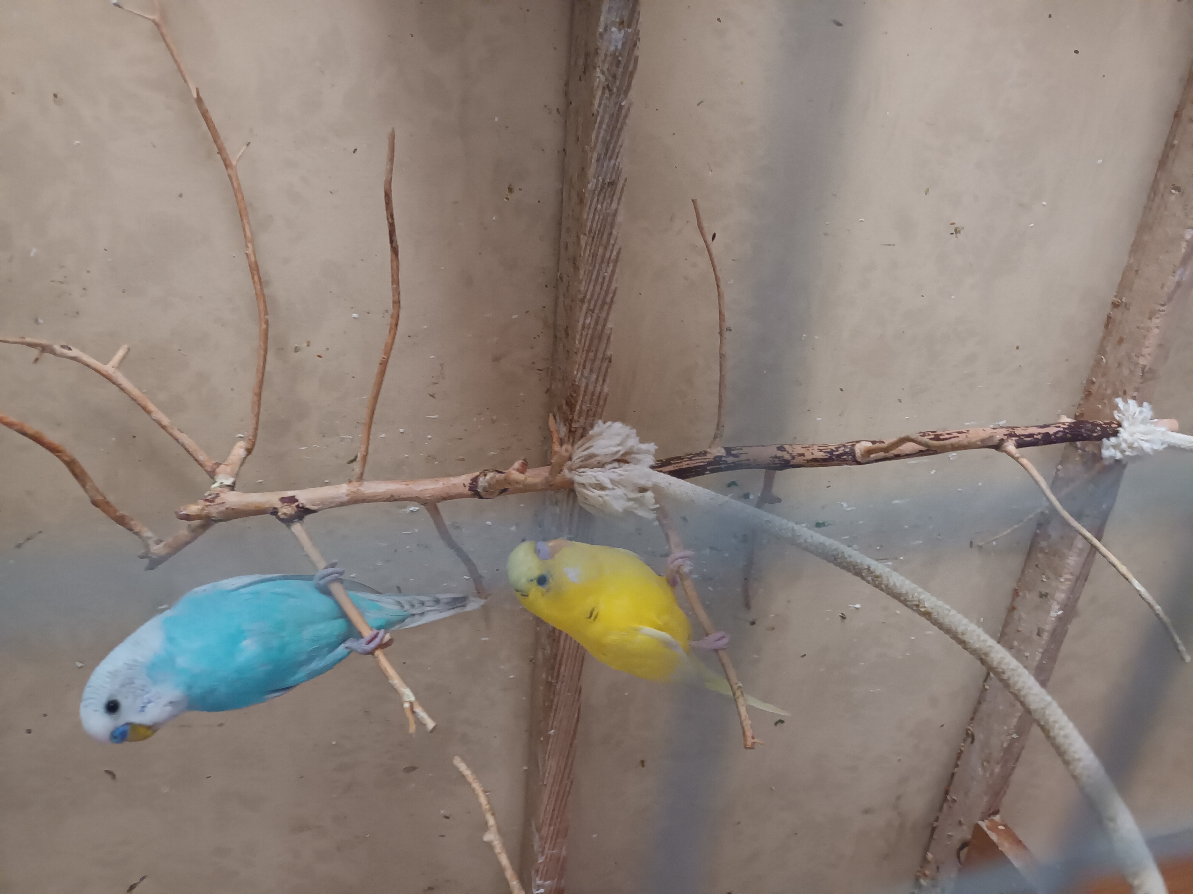 Cały czas siedzą razem, poprawiają sobie piórka, wyganiają inne jak podlecą do nich. Wpuściłem do nich samca i go przeganiają
