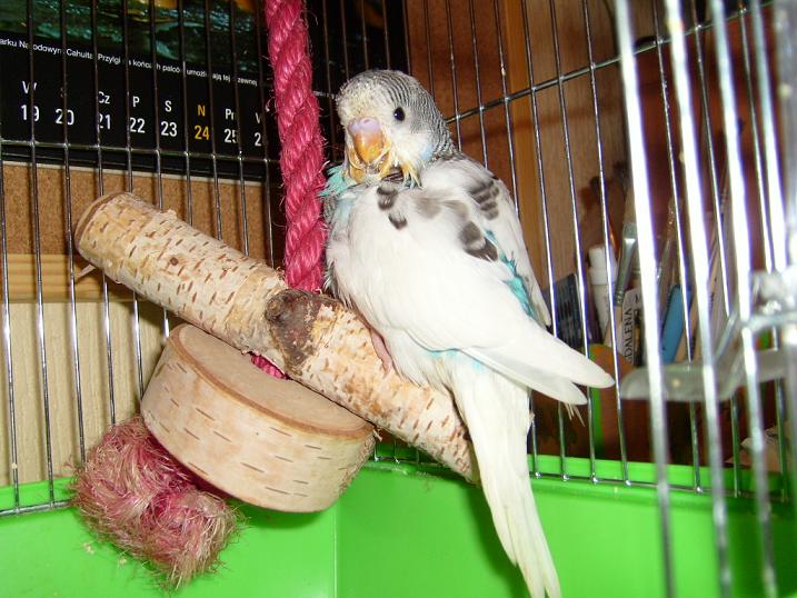 maluszek skończył dziś 35 dni. Jest w świetnej formie, uwielbia towarzystwo człowieka, jak również innych papug, które mam w domu:):)