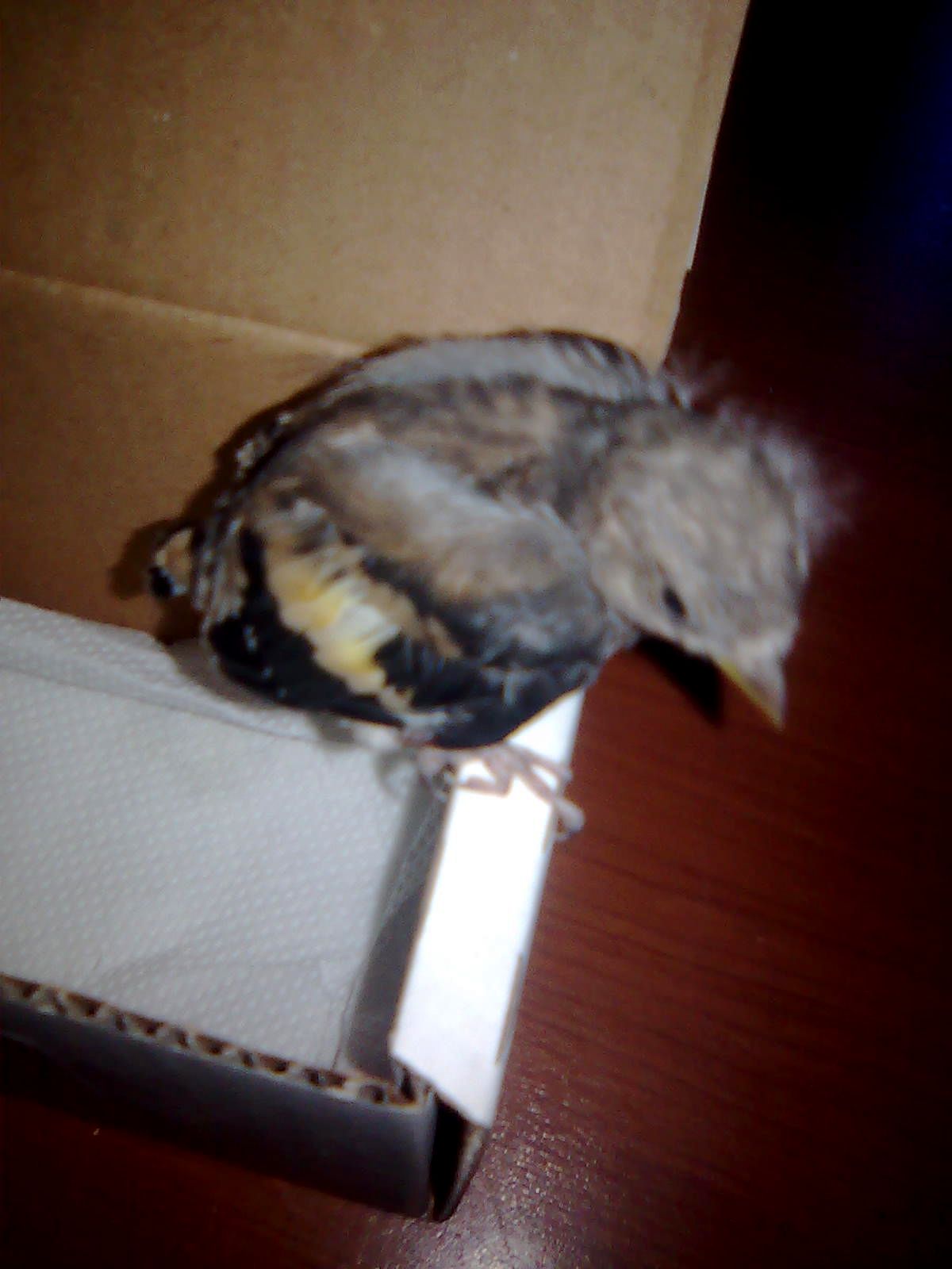 Jakąś godzinę temu znalazłam na działce małego ptaszka, który nie może latać. Poruszał się skacząc jak żaba. Zabrałam go do domu i umieściłam w pudełku. Zauważyłam, że ogólnie ptak jest żywotny, reaguje żwawo na bodźce, jest tylko bardzo wystraszony... Od czasu do czasu porusza skrzydełkami (właściwie wygląda to tak jakby mu one drżały..) Zastanawiam się czy to nie jest jeszcze pisklak - ma wyraźny puszek na brzuchu. Może wypadł z gniazda...