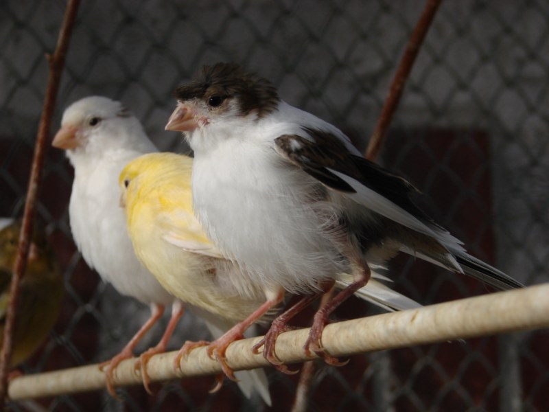 kanarki sie wykluły i mam 2 białe w tym jeden z czuprynką ciemną po tatusiu białym z koronka i mamusi zołto brązowej