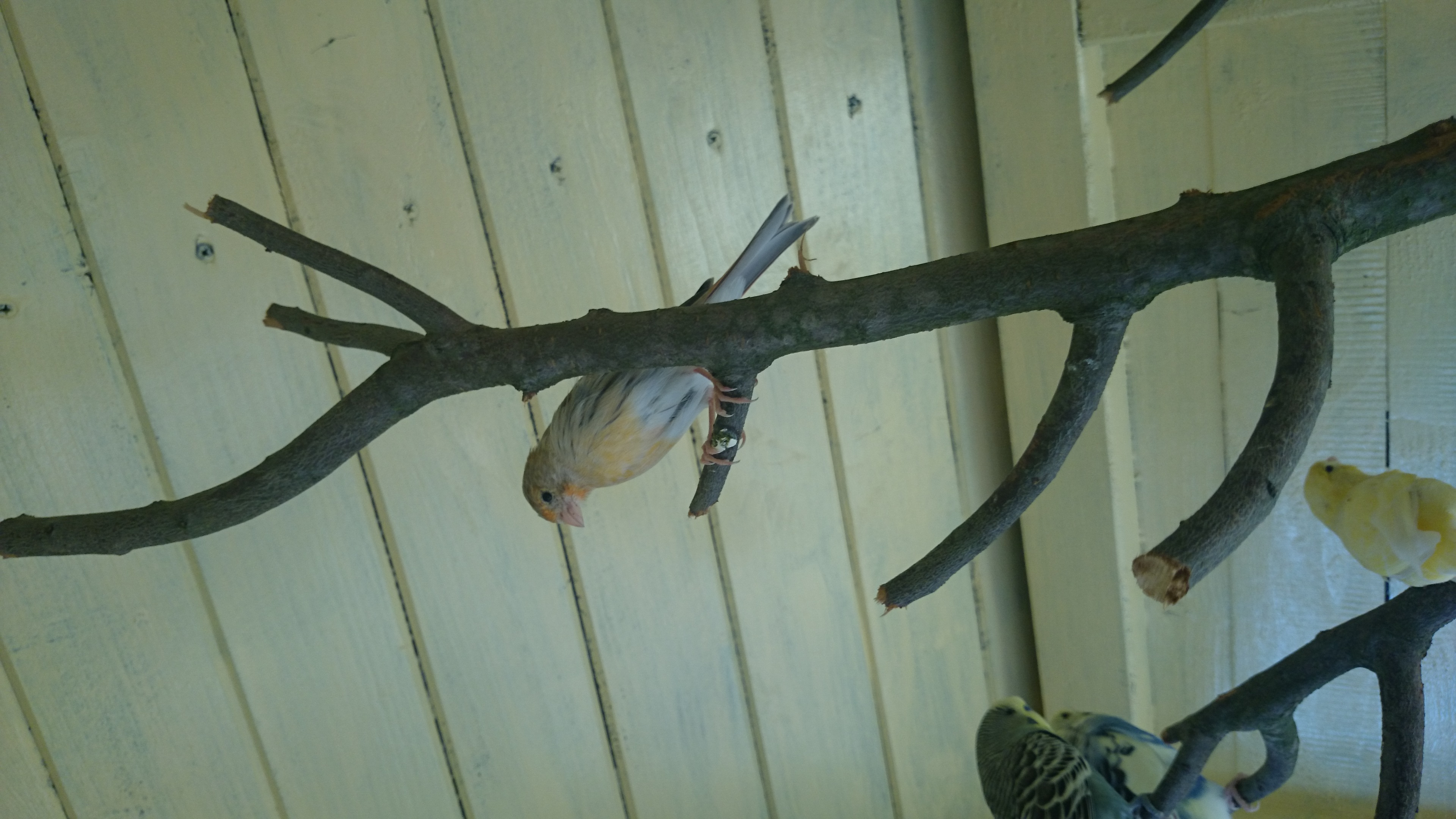 A z drzewkiem to też nie wiem ptaki moim zdaniem i tak mają o wiele więcej swobody niż w tych małych klatkach jest kilka małych żerdzi które są bezpośrednio przymocowane do ściany woliery jednak ptaki i tak żwawo skaczą i latają. Len postaram się więc ograniczyć ale wszystko jednak z mojej obawy czy przetrwają zimę dlatego chcę je stopniowo przyzwyczajać do tłustszych pokarmów kiedyś przeczytałam że można ptakom dawać troszkę słoninki spróbowałam im dać kawałeczek jednak zignorowały to. A do tematu kanarków i falistych to moje ptaki raczej zajmują się sobą papugi siedzą razem i kanarki też są razem ich relacje są bardziej olewcze a kiedy wymieniam im jedzenie to nie atakują się (no może tylko jeden kanarek bardzo długo był sam w jednej klatce i dlatego pewnie jest zazdrosny o jedzenie ale powoli to się zmienia i już tak się nie kłócą) jedynie jeśli jakiś ptak chce dołączyć do jedzenia to po prostu się doskakuje do miski nawet jeśli obok są papugi to atmosfera jest dosyć łagodna... No chyba że chodziło o okres lęgowy wtedy może mogłabym się z tym zgodzić ponieważ podczas lęgów ptaki stają się bardziej terytorialne ale myślę że woliera jest na tyle duża żeby każdy ptak znalazł swoje miejsce np teraz jak zauważyłam papugi mają trzy ulubione miejsca: obok budki, całkiem na górze i po środku z tyłu.