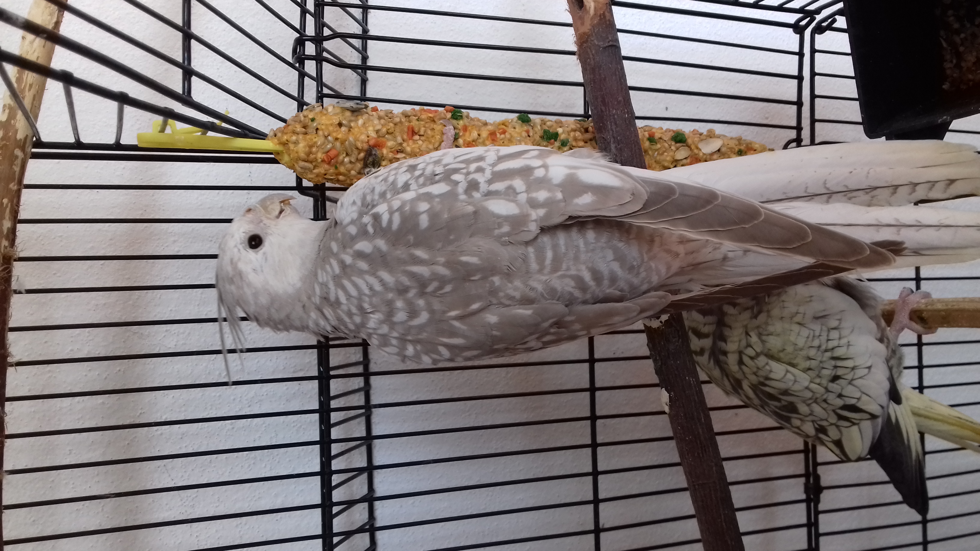 Witam, od niedawna mam dwie nimfy, czy mogłabym liczyć na Waszą pomoc w określeniu ich płci? Ta żółta ma ok 1,5 roku wydaje mi się, że to samiczka, ponieważ przeszła pierzenie, a perły zostały i ogólnie prawie nie wydaje z siebie dźwięków. Ta biała teraz jest w trakcie pierzenia. Wydaje mi się, że ma ok. 7 miesięcy. Przez jej białą główkę myślę, że to samiec, ale mogę się mylić. Jeśli chodzi gwizdanie to może nie jest melodyjne, ale raczej takie trr trr. Odzywa się częściej niż żółta papużka.