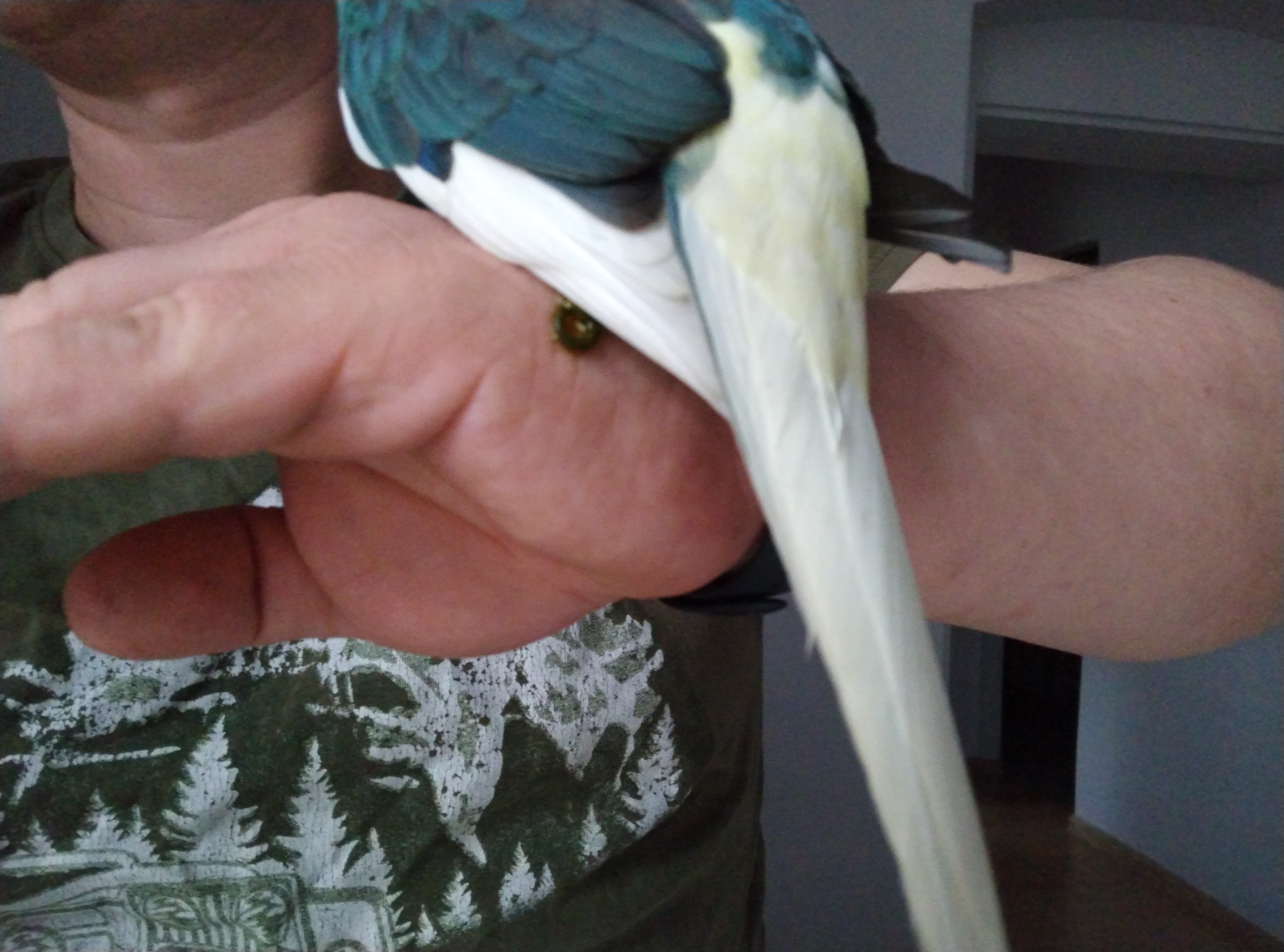 Około 2 tygodnie temu gdy latała po domu, papużka została trącona przez psa. Pies w domu jest z nami 9 lat, chcieliśmy go zapoznać z nowym domownikiem ( wcześniej izolowaliśmy psa aby papuga się zaklimatyzowała się w domu). Pies nie tracił jej mocno ani nie złapał w pysk. Papuga wylądowała na ziemi ( normalnie, bez uderzenia) po czym wzbiła się w powietrze i uciekła do klatki. Psa upomnieliśmy. Od tego momentu miała jeszcze gdzieś tam niezdarne lądowanie lub gdzieś jej skrzydło się zachaczyło w klatce ale bez większej kontuzji.