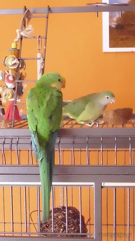 Tosia coraz częsciej przesiaduje w klatce Lucka- mają już 2 pojemniki z piciem i jedzeniem, w piatek nawet zamknelismy ich późnym wieczorem no ale w pewnym momencie zaczły piórka fruwać więc mąż sie przestraszył i otworzył klatke... zaraz razem wylecieli z niej.... tak się zastanawiam czy nie zostawić ich na noc w klatce zamknietych mimo jakiejś bójki??