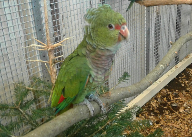 W papugarni wśród około 100 papug jest jeden szczególnie agresywny ptak. To średniej wielkości amazonka pąsowa. Ptak tak jak wszystkie inne przylatuje do ludzi po jedzenie. Siedzi kilka minut, je i z niewiadomych powodów atakuje, tzn. boleśnie szczypie i dziobie. Wtedy również bardzo głośno krzyczy. Ostatnio usiadła mi na szyi i uszczypnęła w twarz. Amazonka atakuje co jakiś czas inne osoby. Co może być przyczyną takiego zachowania i co zrobić jak ptak znowu zaatakuje? Pracownicy papugarni wiedzą o tym złośliwym ptaku i ostrzegają, że potrafi dziobnąć. Czy ze zdjęcia można określić płeć i wiek? Może ptak wszedł w okres rozrodu?