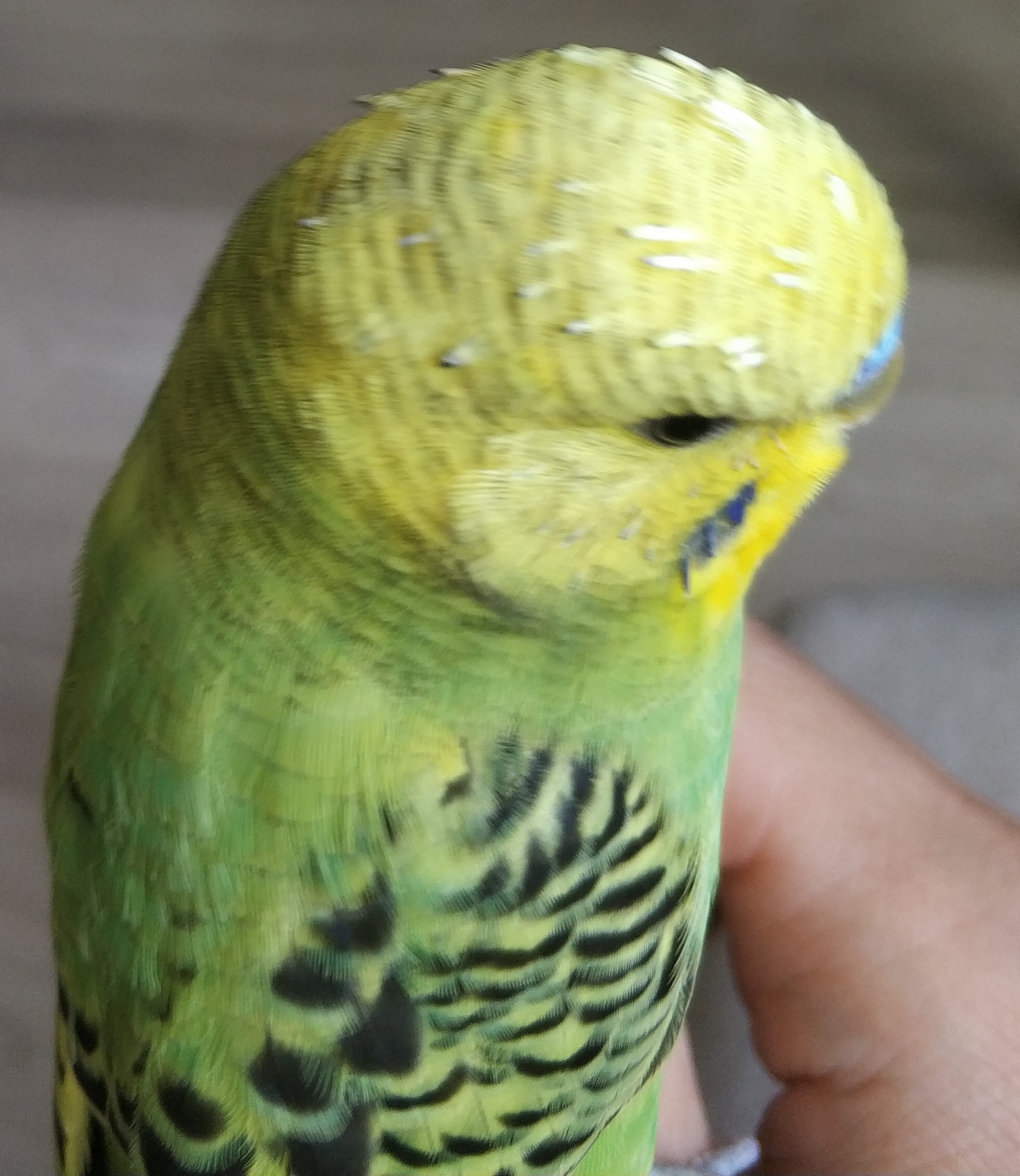 Wygląda świetnie. U mnie Neon też tak wygląda, natomiast Ciri jak zmienia piórka na główce to wygląda na chorą... Wyglądała, chodzi o główkę, jak świeżo opierzony pisklak xdxd